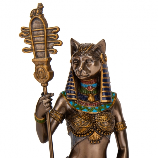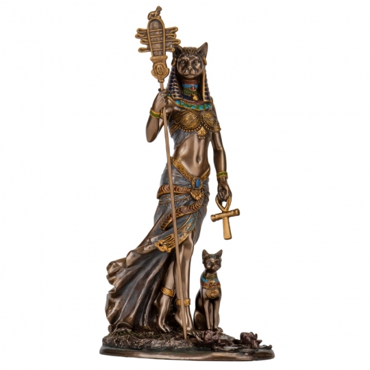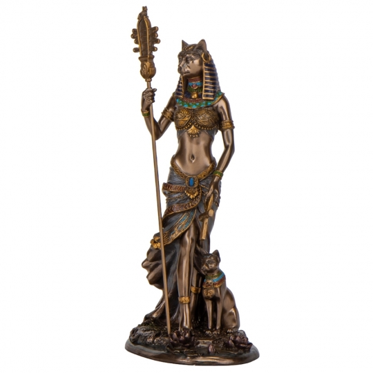 Статуетка Veronese виготовлена з полістоуну (штучного каменю) та покрита бронзовим напиленням. Бастет – це богиня в давньоєгипетській міфології, яка відома своєю захисною та цілющою силою, а також асоціюється з кішками і вищими аспектами жіночої природи. Статуетка Бастет зображує жінку з головою кішки, яка символізує її владу над тваринами та її захист. Вона тримає в руках амулети, що вказують на її цілющу силу та мудрість. Статуетка Бастет може бути прекрасним подарунком для тих, хто цінує та поважає кішок, а також для любителів давньоєгипетської міфології та культури. Вона може послужити як символ захисту та благополуччя у домі, а також як об’єкт для декорування та естетичного задоволення. Запакована в гарну подарункову коробку. Тож купуючи цю статуетку, Ви отримуєте цінний і гарний подарунок, який не вимагає доповнення. Завдяки надійній внутрішній упаковці, виготовленій з пінопласту з поглибленнями для найменших деталей, Ви можете бути впевненими у безпеці при транспортуванні.