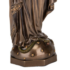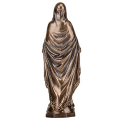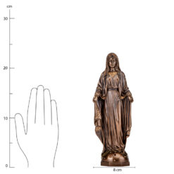 Висота статуетки23 см, довжинаОсобливості:8 см, ширина 6 смСтатуетка Veronese виготовлена з полістоуну (штучного каменю) та покрита бронзовим напиленнямДіва Марія у християнській традиції є матір’ю Ісуса Христа і однією з найшанованіших святЇї образ має ніжні риси обличчя, що відображають материнську любов та мудрістьВона представлена в простій та скромній позі, що відображає її покірність та покладання надіїСтатуетка Діви Марії може бути чудовим подарунком для християн, які цінують свою віру та