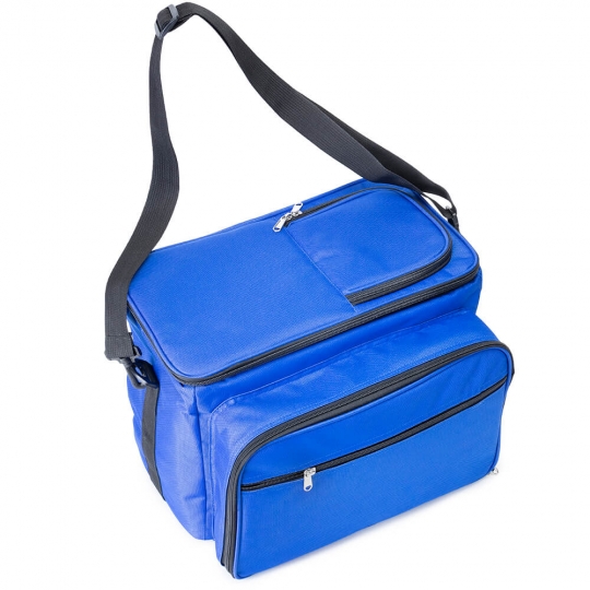 Аксесуари всередині закріплені ременями, сумка має просторі кишені та зручні регульовані шлейки.