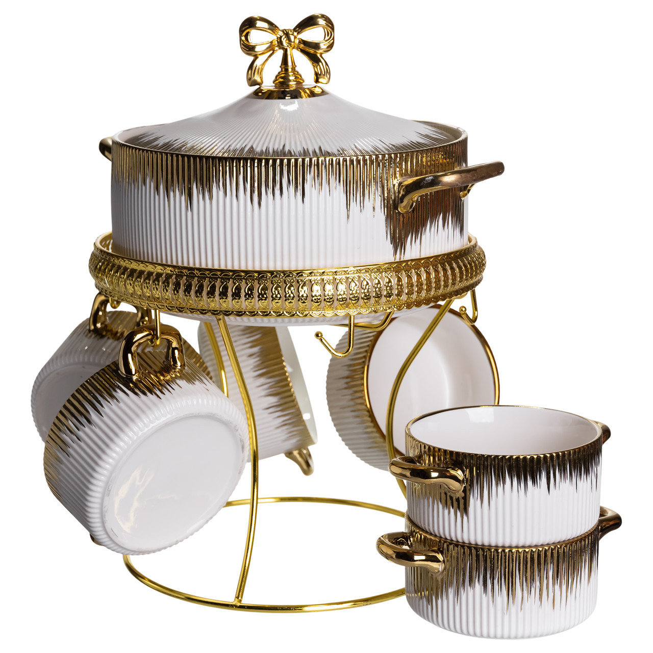 Суповий сервіз на 6 персон супниця 2 (л) на підставці з бульйонницями 400 (мл) тарілки для супу Білий із золотом FM-A23-2