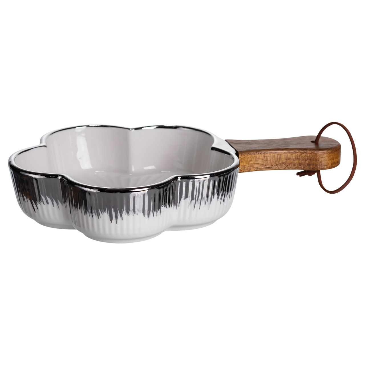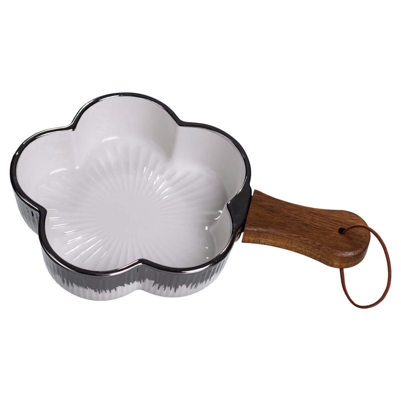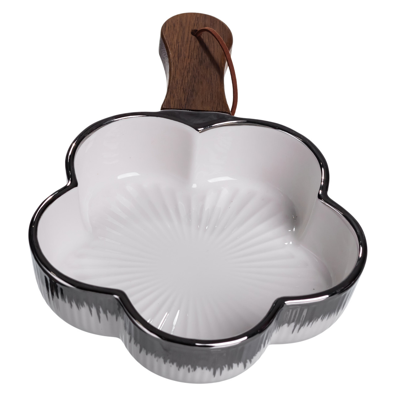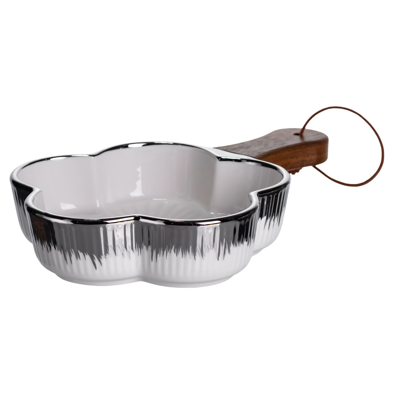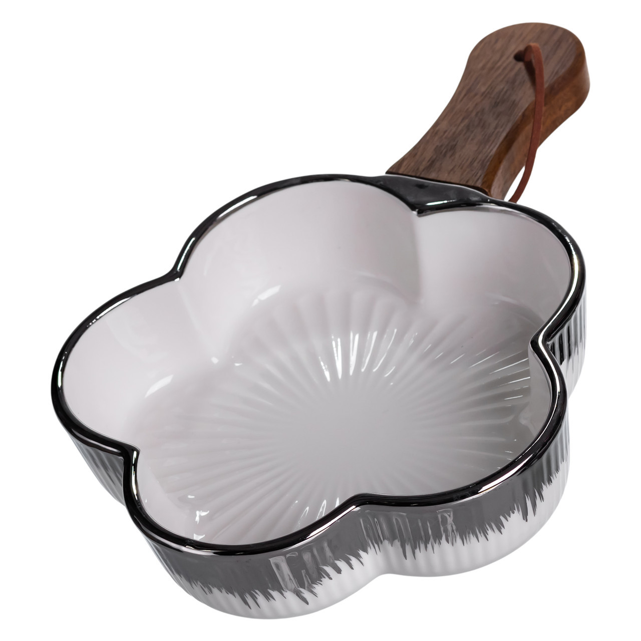 Тарілка порцелянова глибока з ручкою Квітка 24×16×4 (см) блюдо сервірувальне з ручкою для подачі тарілка сковорода Срібло ZJH-13-3