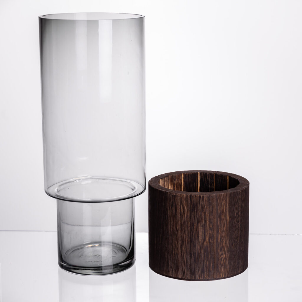 Ця ваза стане стильним акцентом та практичним елементом декору, гармонійно вписуючись у сучасний чи скандинавський інтер’єр. Поєднання гладкого тонованого скла і фактурного натурального дерева створює образ і образ, що запам’ятовується. Чіткі геометричні форми і спокійна палітра кольору роблять вазу універсальним рішенням для мінімалізму і лофта. Конструкція складається з двох частин високого скляного циліндра та окремої дерев’яної основи. Їх можна використовувати як разом, так і окремо, створюючи різні варіанти оформлення. Основні характеристики вази для квітів: Матеріал: скло; Діаметр: 12 см; Висота: 30.5 см; Глибина: 27.5 см; Об’єм: 2.5 л. Основні переваги декоративної вази: Ваза підходить для різних типів кольорів, а також для сухоцвітів; Ваза виготовлена з високоякісного скла, що гарантує її міцність та довговічність; Універсальність дизайну дозволяє вазі гармонійно вписатись у будь-який інтер’єр. Така ваза підходить для живих чи штучних кольорів, а також для декоративного прикраси простору. Її легко інтегрувати у сучасний чи класичний інтер’єр. Проста у догляді – достатньо мити вручну або в посудомийній машині.