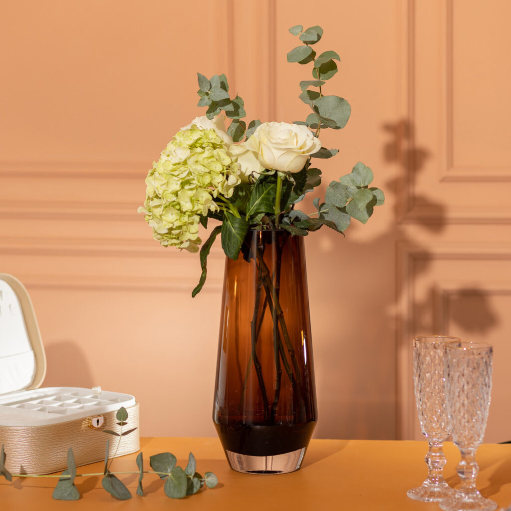 Ваза для квітів скляна 32 см скляна з кольорового скла 2.7 л Коричнева HP-10-28