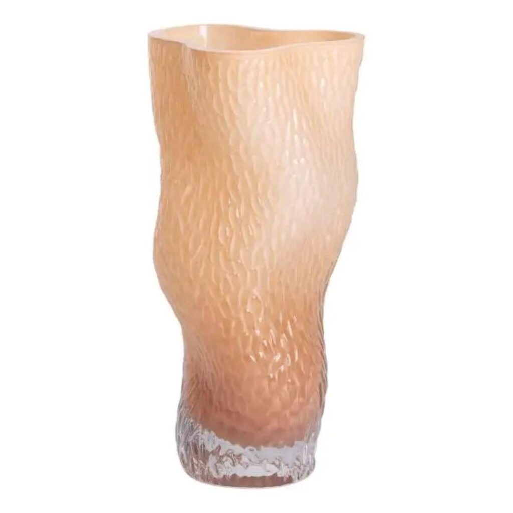 Декоративна ваза в скандинавському стилі з тисненням виконана з високоякісного скла, що поєднує простоту й елегантність. Її дизайн вирізняється характерними для скандинавської естетики мінімалістичними формами і тонким тисненням на поверхні, що надає вазі особливого шарму. Висота вази становить 30 см, що робить її універсальною для різноманітних квіткових композицій або як акцентний елемент в інтер’єрі. Основні характеристики: Матеріал: скло; Об’єм: 1.6 л; Розмір: 14.5х11х30 см; Діаметр: верхній – 13х9.5 см, нижній – 9 см; Глибина: 25.5 см. Тиснення на вазі створює легкий рельєфний ефект, який додає глибини і текстури виробу, водночас зберігаючи простоту і стиль скандинавського дизайну. Прозоре скло дає змогу чудово підкреслити красу квітів або декоративних елементів всередині. Для догляду за вазою рекомендується використовувати м’які мийні засоби та уникати абразивних матеріалів, щоб зберегти її в первісному вигляді. Очищення вручну дозволяє зберегти чіткість тиснення і забезпечує довговічність виробу.