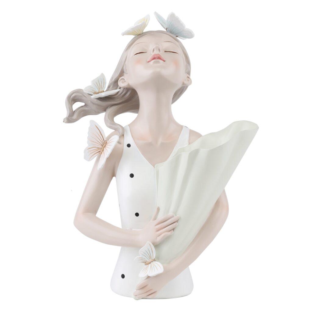 Такому предмету інтер’єру саме місце на туалетному столику дівчини. Він прикрасить відкриті стелажі у вітальні та полицю над каміном. Хороша деталізація, використана виготовлення статуетки, додає їй витонченості.
