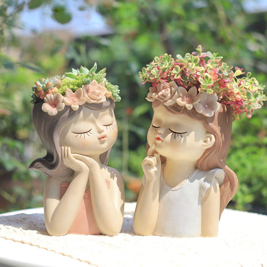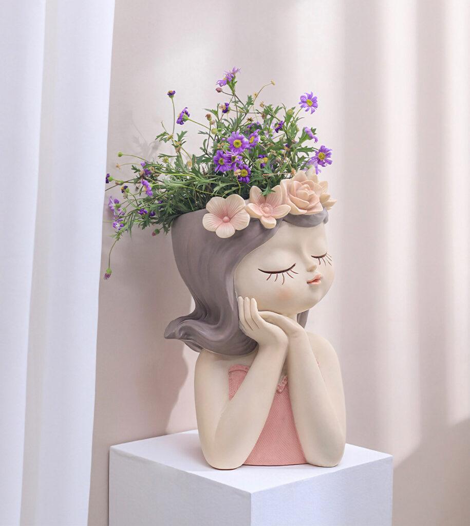 Чарівна дівчина вазон для рослин, сукулентів чи букетиків із сухоцвітів.